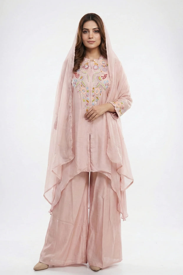 Luxe Crushed Silk Embroidered Palazzo Suit Set